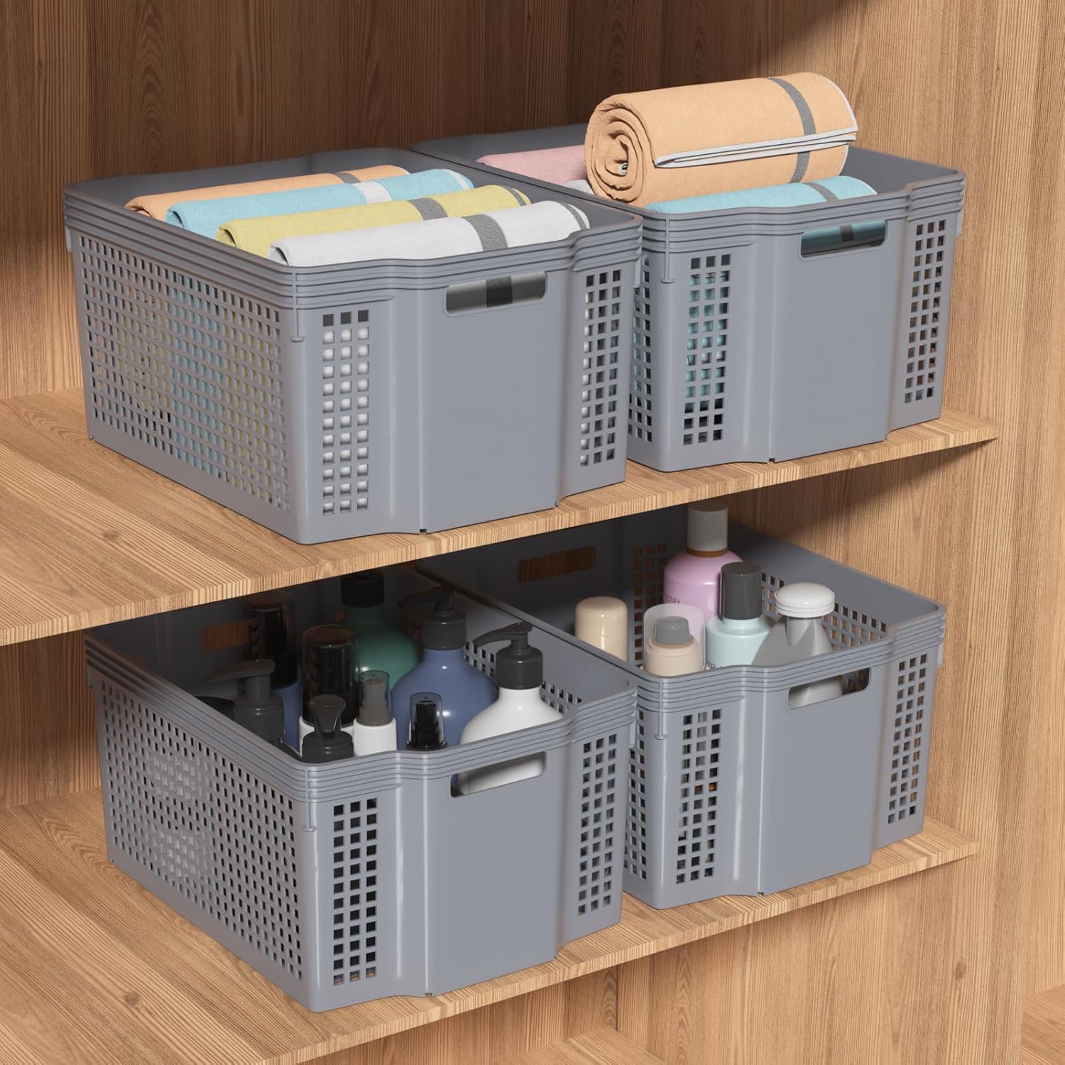 Stackable plastic storage basket bin has multiple uses, you can put the plastic storage basket in the closet to store fruits, snacks, blankets, linens, bath and beauty products, magazines and hats, etc, You can also place the drawer shelf storage container in the kitchen to store bowl, chopstick, plate, spices, vegetables, groceries and other items, beside it's an ideal choice to put in your bathroom, living room, study room and office to manage your space. The Yesdate Stacking organizer can be stackable in multi-layers, max the use of vertical space, adjust the closet organizer and storage box layers freely to fit your closet space. This basket organizer is made with high-quality plastic and BPA free, thick and sturdy, durable and lightweight, strong load-bearing, can be used for many years, easy to clean with wipes.
