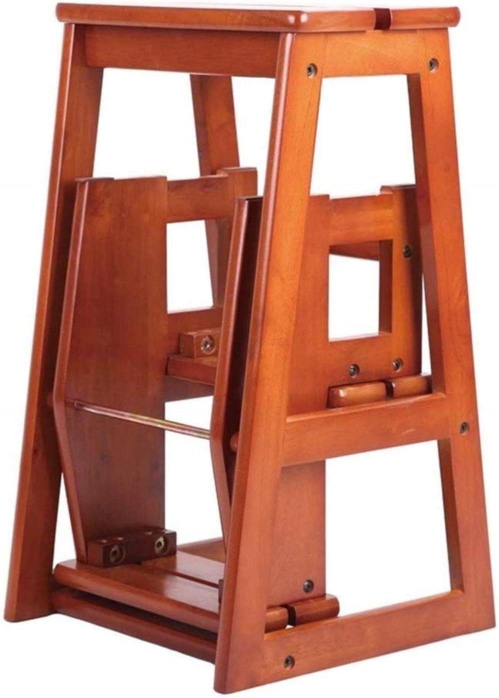 Folding Step Stool Chair - Tritthocker Multifunctional 3-Step Ladder - Dark Walnut Wood Library Stool - Compact Footrest for Home & Office Use