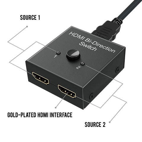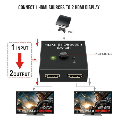 HDMI Bi-Directional Switch helps you to connect two HDMI inputs to one HDMI display.