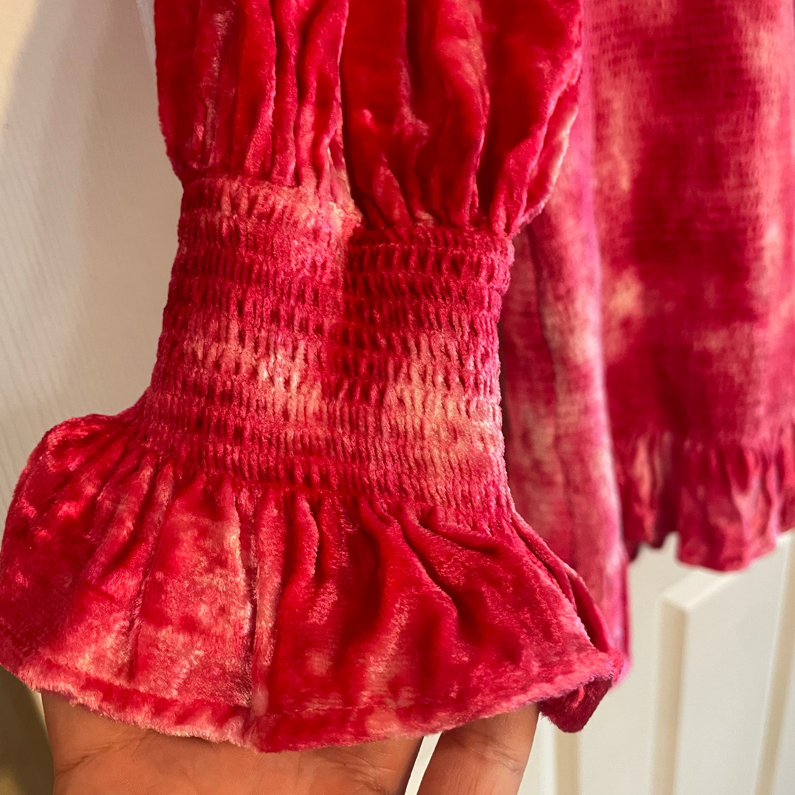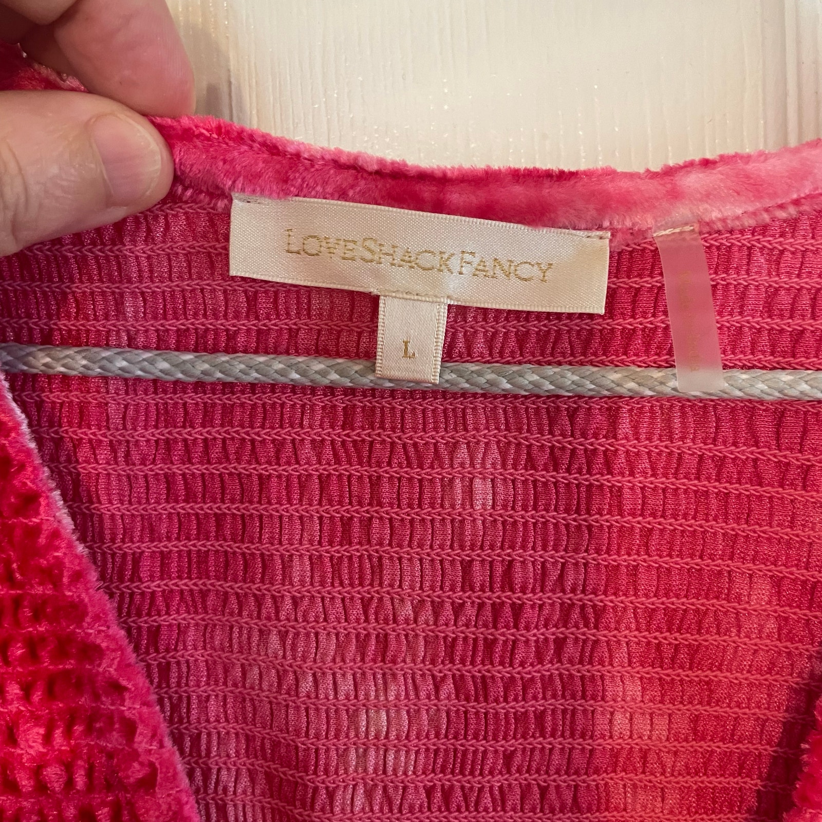 LoveShackFancy Evan Shirred Ruffle Mini Dress size Large. This mini dress is crafted in a shirred pattern and has ruffle detail to accentuate the overall look.