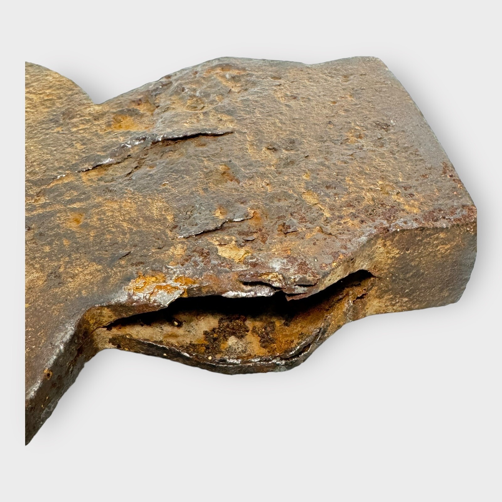 This product is a vintage hand-forged iron large axe head, perfect for woodworking and carpentry tasks. Made by hand, this antique original tool is sure to add a touch of rustic charm to any collection or workshop. With a sturdy construction and a unique handmade quality, this axe head is a functional and decorative piece that would make a great addition to any toolbox or display. Envision yourself using this large axe head to expertly cut through wood with every swing, making your woodworking projects a breeze.