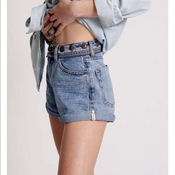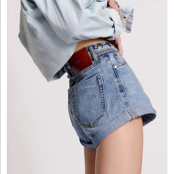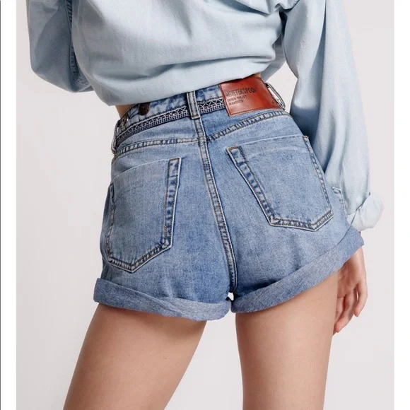 Description: THE HIGH WAIST BANDIT. OUR CULT CLASSIC DENIM SHORTS BUT HIGH WAISTED! SEMI RELAXED IN FIT. FITTED AROUND THE WAIST AND SOUCHLY THROUGH THE HIP. WITH OUR SIGNATURE HEM, ROLLED AND TWISTED LIKE A BANDIT. DESIGNED TO FIT AT THE SMALL HIGHEST PART OF YOUR WAIST.HOLLYWOOD HILLS IS A BRAND NEW CLASSIC & VINTAGE-INSPIRED MID-BLUE DENIM WASH. A CLASSIC, WEARABLE DENIM WASH DESIGNED TO LAST A LIFETIME.Fabric: 100% cotton
