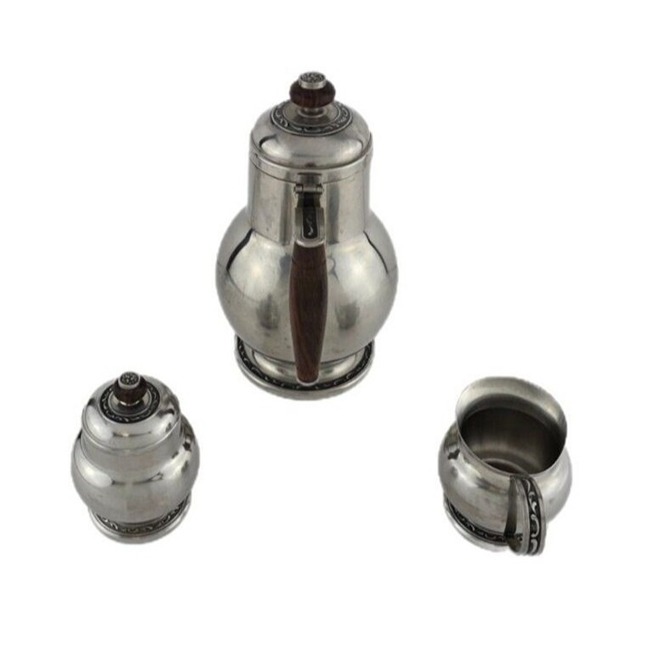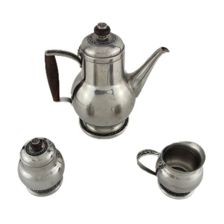 Oneida Tea Set 9.5" Tall Teapot Sugar w/Lid & Creamer 18/8 Stainless Japan READ.