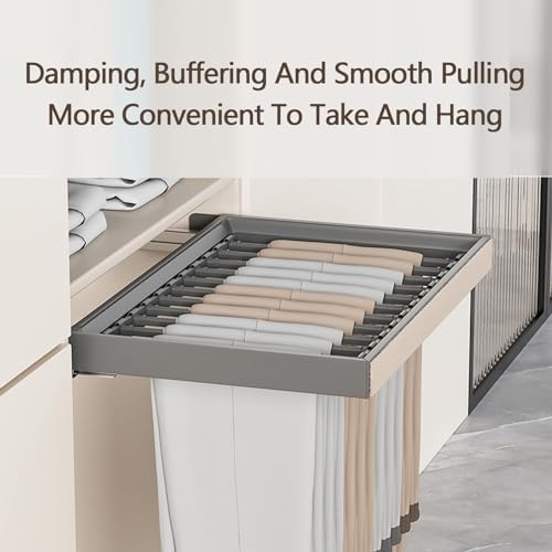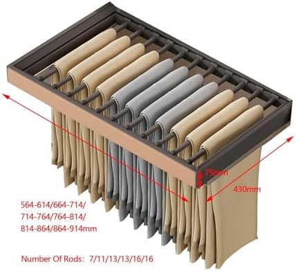 Transform your wardrobe organization with our versatile pull-out trouser rack, crafted from premium aluminum alloy and durable ABS material. Designed for easy installation on both sides of your wardrobe, this rack enhances your space while keeping your clothes accessible and orderly. Imagine effortlessly hanging jeans, trousers, ties, and scarves, maximizing every inch of your wardrobe or laundry area. This pull-out trouser rack is not just a storage solution; it also functions as an invisible drying rack placed conveniently above your washing machine cabinet, making post-wash drying a breeze. With various size options tailored to fit cabinets ranging from 600mm to 900mm, our pull-out trouser rack accommodates different wardrobe configurations while supporting up to 35KG of weight. It’s an ideal addition to any wardrobe, fitting room, or cloakroom, transforming clutter into a neat and tidy space. Specifications: - Material: Aluminum alloy and ABS - Size Options: - 600mm cabinet: 564-614mm - 650mm cabinet: 614-664mm - 700mm cabinet: 664-714mm - 750mm cabinet: 714-764mm - 800mm cabinet: 764-814mm - 850mm cabinet: 814-864mm - 900mm cabinet: 864-914mm - Load-bearing capacity: 35KG - Minimum cabinet width required: 450mm Package includes: 1 x Pull-out trouser rack drawer Note: - Please allow a 0-2cm error due to manual measurement. - Colors may vary slightly due to monitor calibration. Please refer to the actual product for true color representation. Elevate your organization game with our pull-out trouser rack, and enjoy a more functional, beautiful space!