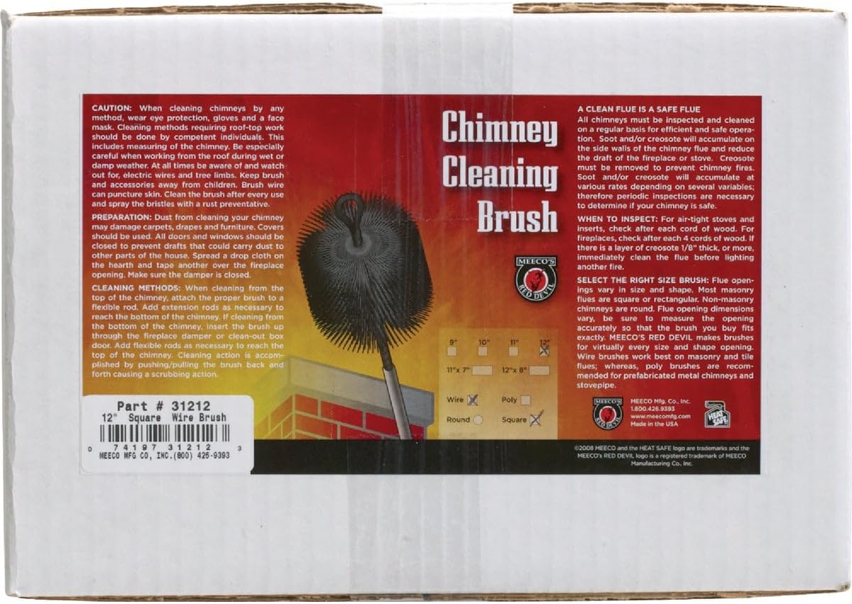 Rectangular wire brushes are a compact, low profile design. The benefits of this design are a brush that follows chimney and flue contours, a brush that will easily reverse direction in the flue for easier cleaning, a brush that will easily negotiate angles and bends up to 90 deg. , and a brush that results in a more thorough cleaning with less effort. 1/4 NPT; all extension rods we stock from this manufacturer should fit (except ones for pellet stove brushes). The product is manufactured in United States.