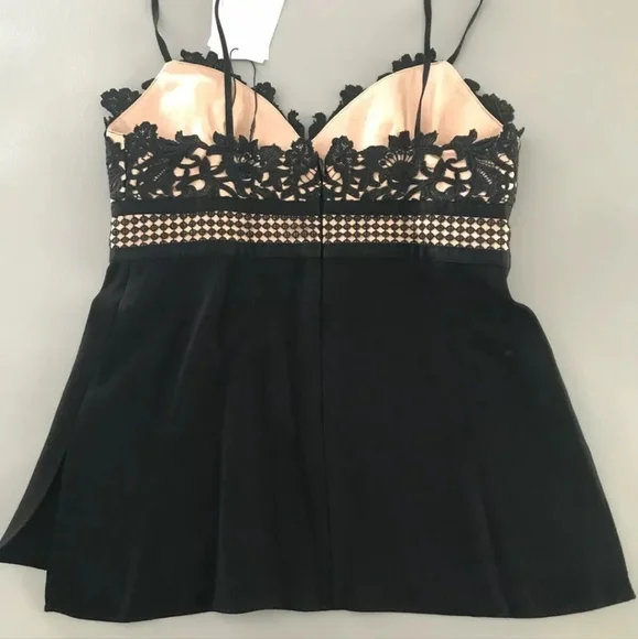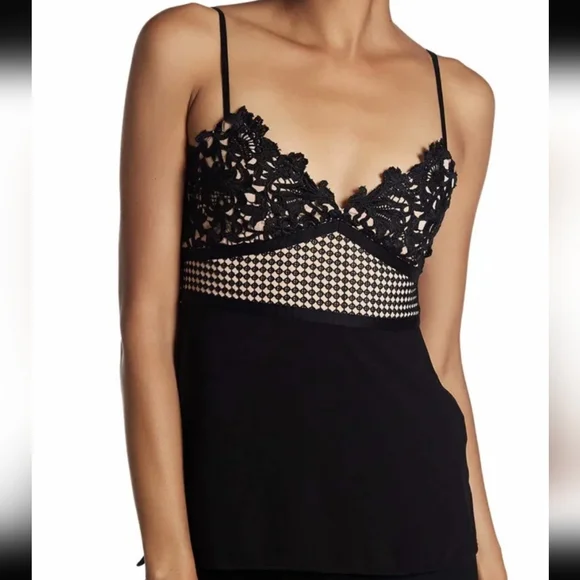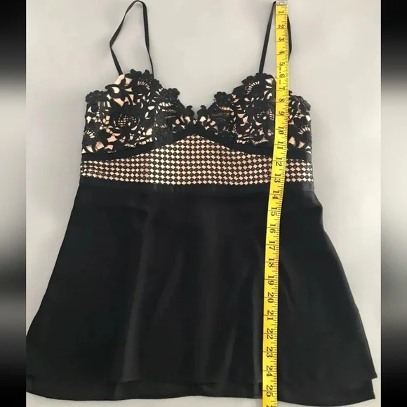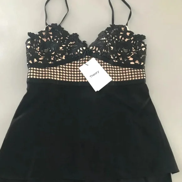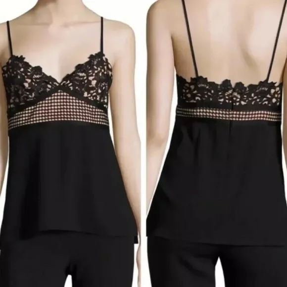 Theory Melaena T Lace Elevate Crepe CamisoleSize 4Floral lace; gridwork detailScallop V neck; square backEmpire waist; semi-fitted silhouetteSpaghetti thin straps Zip in backRaw edge; straight hemlineBinding under the bust/waistSide slitsPremium Japanese crepe with a smooth satin backCrease-resistant; quick dryingSee photos for approximate measurements and details.