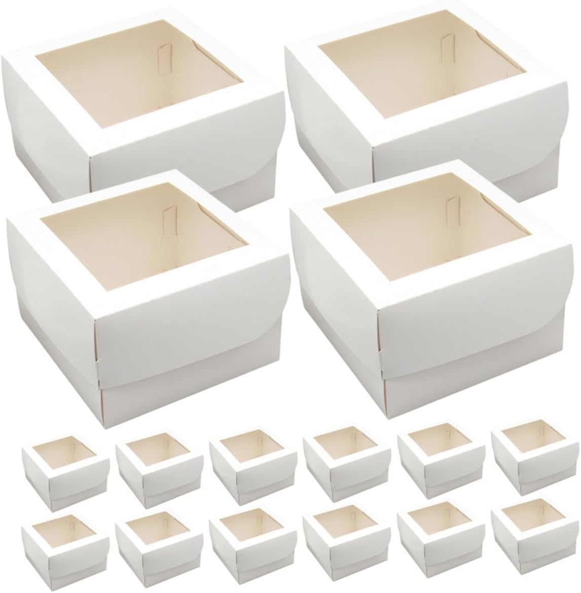 Package List 25 x Cake Boxes Features -Multipurpose bakery takeout containers: suitable for a variety of desserts, these boxes for desserts can be used for cupcakes, muffins, strawberries, and more, catering to diverse bakery needs bakery treat boxes -Enhanced presentation with pastry packaging box: the transparent window adds a professional touch, making these bakery cake boxes ideal for displaying desserts at events or in bakery shops cupcake holders -Stylish and functional charcuterie box: the sleek design and sturdy construction make these paper cake boxes for present or presenting desserts in a stylish manner cake boxes with window - fit for small treat boxes with window: designed for cakes, these dessert boxes with window provide an elegant packaging solution for small cakes, cupcakes, and other sweet treats bakery takeout containers -Secure and portable cake storage boxes: these portable cake boxes are lightweight yet , ensuring your baked goods remain intact during transport cake packaging boxes -Product Info: Baking packaging boxes -Size:15.50X15.50X10.00cm/6.09X6.09X3.93in -Color:White -Material:Paperboard,PVCGoods Descriptionbakery boxes with window Featuring a clear window, these pastry boxes with window are for presenting cakes, muffins, or chocolates.dessert boxes The sturdy paper material durability, making them great as bakery takeout containers or treat boxes for cupcakes.treat boxes for cupcakes Their elegant design suits any occasion, from parties to professional bakery packaging needs