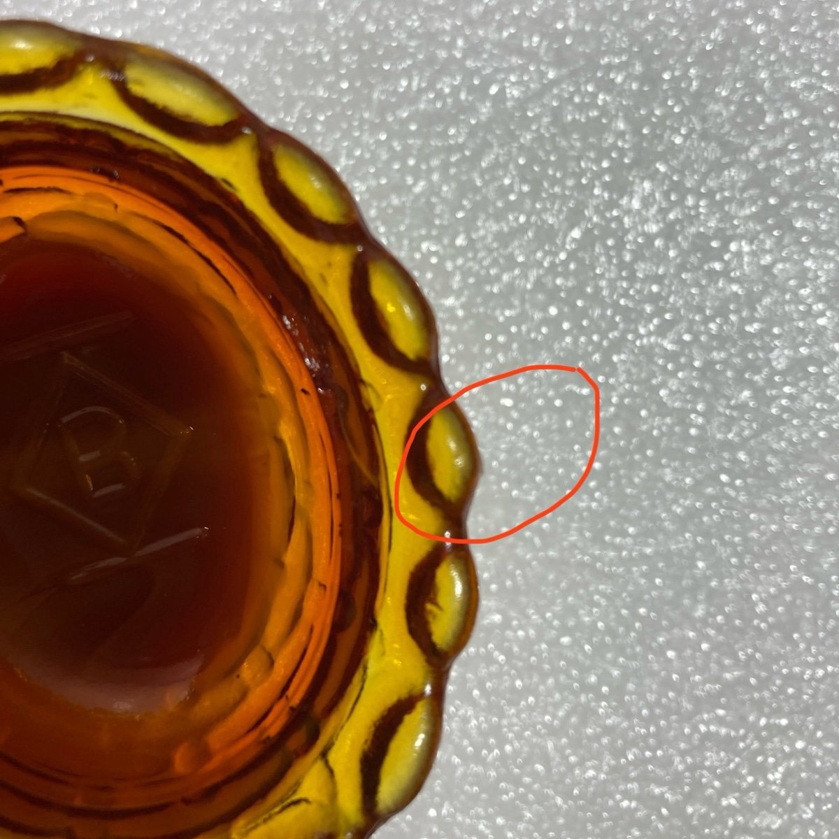 Vintage Rare Boyd Bermuda Cadmium & Selenium Slag Glass Hen on Nest Salt Cellar. 2 1/2” x 2”. Boyd Diamond 2 Lines. Glows nicely under UV light. No filters on photos. Beautiful condition. No chips, cracks or repairs. Last pic shows a slight irregularity in glass on nest. This isn’t a chip, but a raised area so small hard to photograph. In my searches have not seen this color.