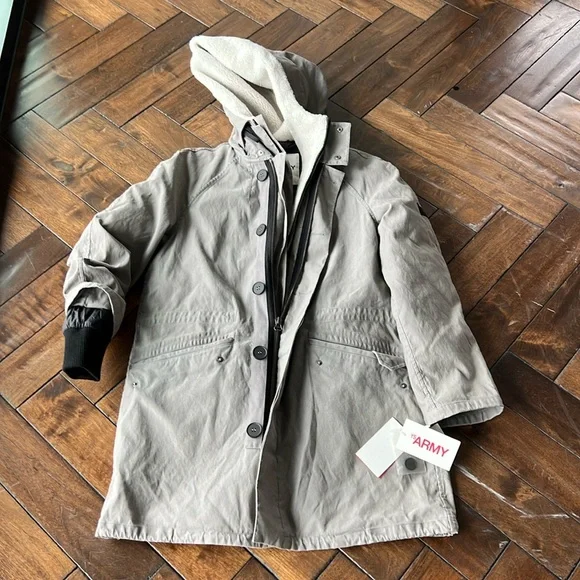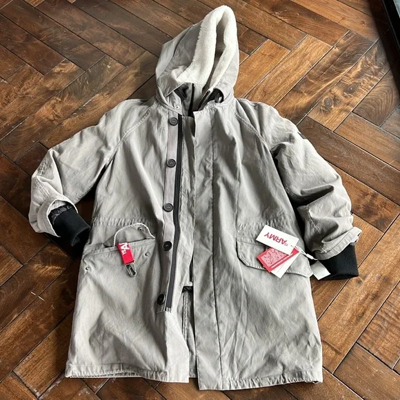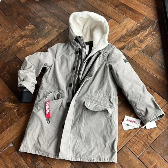 - Designer = Yves Solomon - size = 46.Trunk 3- MSRP = $2110-DESCRIPTION-Long cotton coat with hood- Length: 85 cm- Mini pocket on the left arm with zip logo- Lower flap pockets- Welt chest slit pockets- Non-removable hood- Closure front with zip and snap flap- Bottom of sleeves can be tightened with Velcro-DESCRIPTION &COMPOSITION & CARE- 100% Cotton- Ribbing: 40% Wool 38% Acrylic 19% Polyester 3% Elasthanne- Lining: 100% Polyamide- Padding: 95% Duck Down 5% Duck FeatherTrunk 3